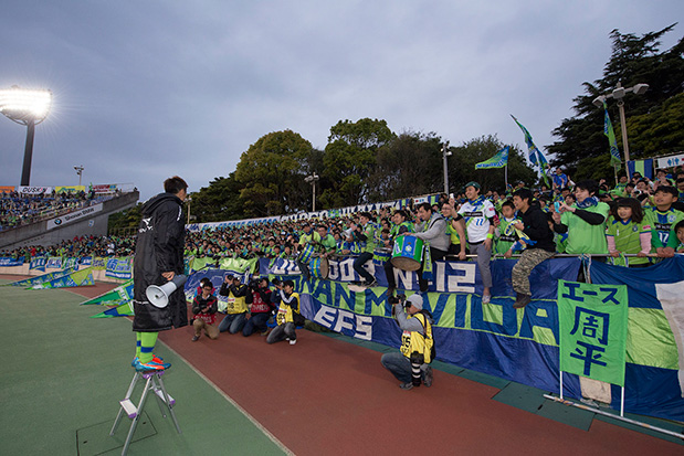 すっかり定着したコール&レスポンスに参加するベルマーレクイーン。