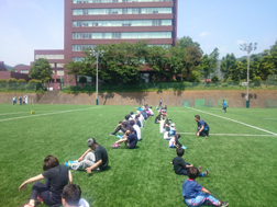 このスポーツ教室は産業能率大学の学生達が授業として運営サポートをしております。前回は屋内での開催でしたので、今回が屋外での初めての開催でした。前回とは異なる所も多かったですが、テントの準備などボリュームのある準備も協力して、時間通り教室はスタートでき、最後まで怪我もなく運営をすることができました。