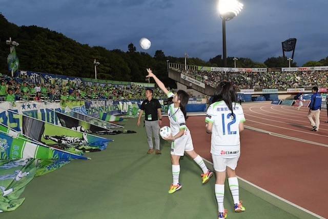 ハーフタイムにSANNOクイーンとベルマーレクイーンがピッチよりスタンドへボールの投げ入れをします。キャッチできたあなたはラッキー!