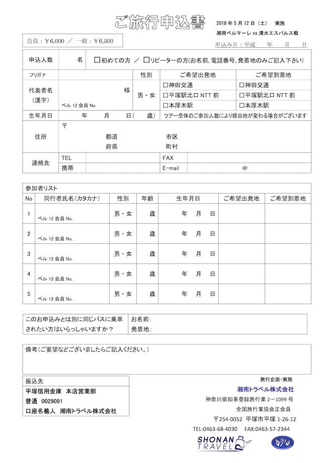 【追加情報!】5月12日(土)アウェイ清水エスパルス戦にみんなで行こう!「オフィシャル観戦バスツアー」参加者募集