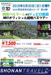 9月30日(日)15:00よりヤマハスタジアム(磐田)にて行われる2018明治安田生命J1リーグ 第28節 ジュビロ磐田戦のアウェイ応援バスツアーを実施いたします。