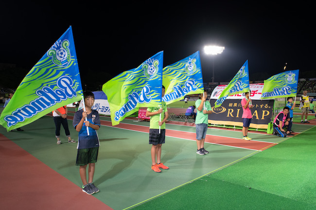 【RIZAPトレーナーによる「ベルマーレはRIZAPと強くなる。」フラッグ入場】