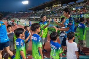 ハーフタイムにはパイロット社員の皆さんによるスタンドへのボール投げ入れが行われました。