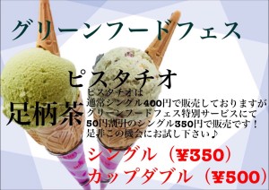 ピスタチオは通常シングル400円で販売しておりますが、今回グリーンフードフェスは特別サービス 50円引きの通常シングル料金にて販売いたします!