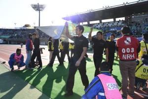 【RIZAPトレーナーによる「ベルマーレはRIZAPと強くなる。」フラッグ入場】