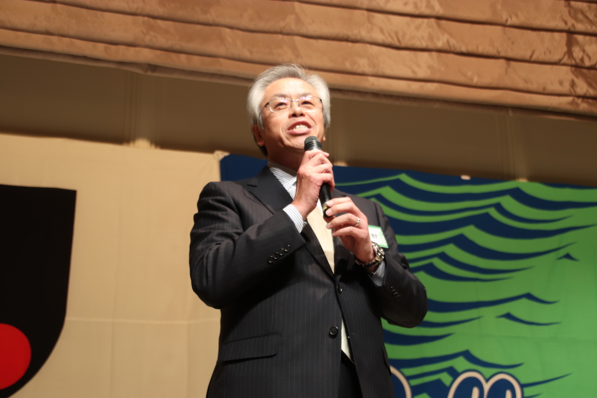 冒頭、会長の眞壁潔より今シーズンご支援御礼の挨拶、来季に向けた表明に、会場からは多くの拍手がおこりました。