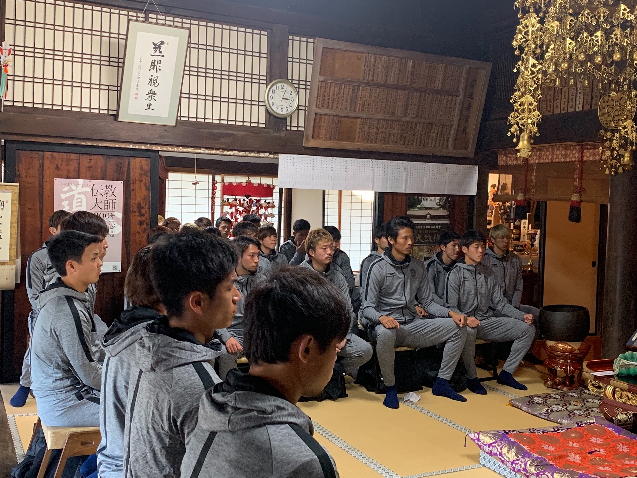 住職の言葉を選手たちは真剣な面持ちでじっと聞き入っていました。