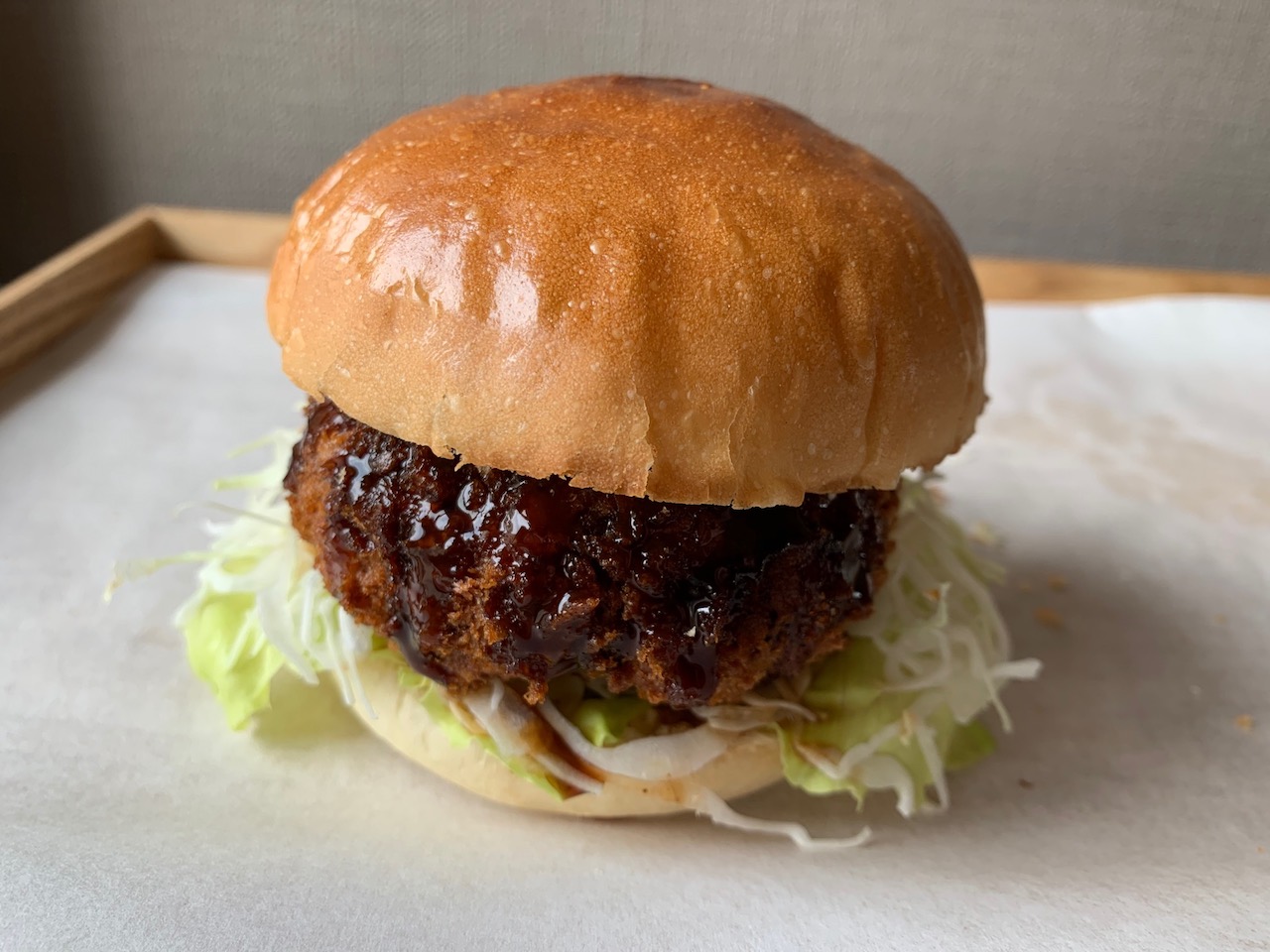 食べ応えのあるヘルシーなお豆腐メンチカツバーガー。オカリナキッチンのオリジナルバーガーです。