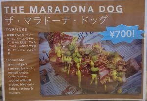 ホームメードグルメポークソーセージ ベーコンとチェダーチーズ ディルピクルス タマネギ ケチャップ マスタードでトッピング