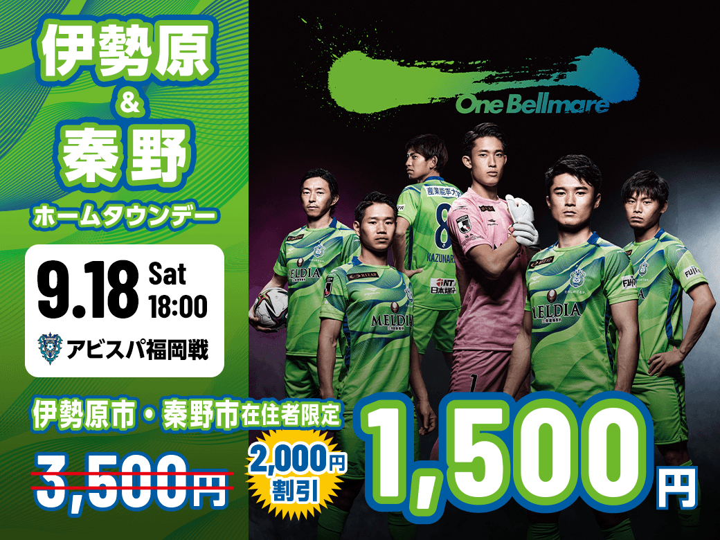 9月18日(土)アビスパ福岡戦は“伊勢原/秦野ホームタウンデー“として開催いたします。一人でも多くの伊勢原市/秦野市の皆さまに我が街のクラブとしてより親しみを持っていただけるよう伊勢原市/秦野市在住者様限定で「伊勢原/秦野ホームタウンデーチケット」を販売いたします。