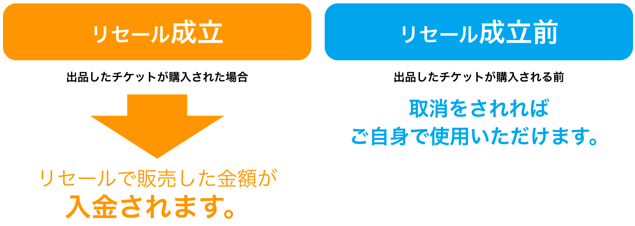 ・不成立の場合は出品されたチケットがリセール販売終了日までリセール成立しなかった場合は入金されませんのでご了承ください。