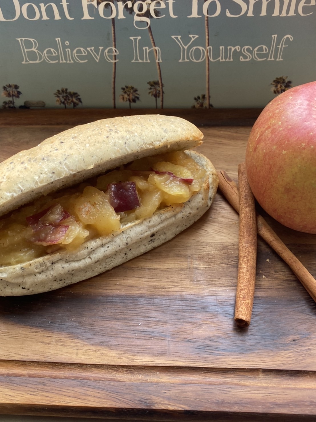 「シナモンアップルサンド」 キャッシュレス対応: PayPay 当日価格:500円 ☆東北応援メニュー☆ 福島産りんごと無添加甘味料アガベシロップを使用し甘酸バランスよく仕上げました。 シナモンのスパイシーな香りが別腹をそそります。 |