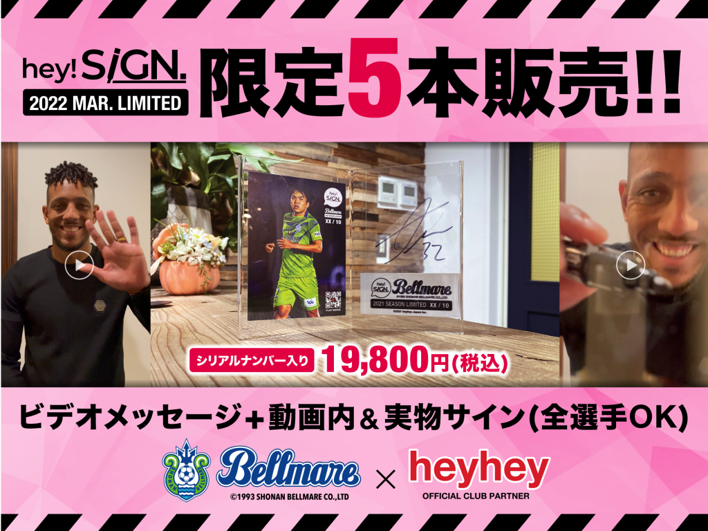 この度「heyhey」にて、2022SEASON限定シリアルナンバー入り実物サインとビデオメッセージのセット「hey!SIGN.」を毎月5本限定で販売いたします。