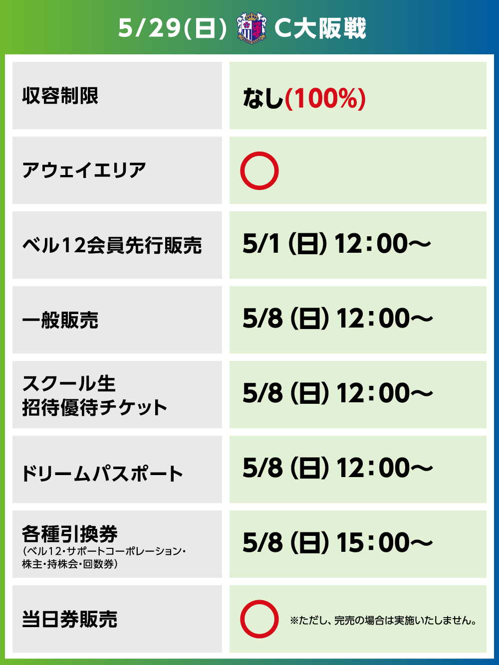 2022明治安田生命J1リーグ第16節5月29日(日)セレッソ大阪のチケット販売についてお知らせいたします。政府方針およびJリーグが定める新型コロナウイルス感染症対応ガイドラインに沿って販売方針を決定しております。詳細につきましては、下記をご参照ください。