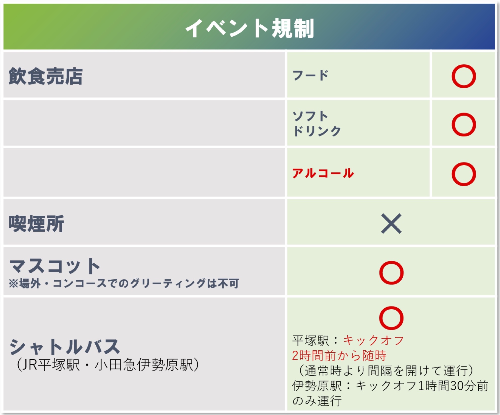 湘南ベルマーレでは2022明治安田生命Jリーグが定める、Jリーグ共通観戦マナー&ルールに加え、「Jリーグ新型コロナウイルス感染症対策ガイドライン」に則り、運営をいたします。