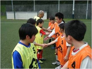 最後は各チーム対面に1列に並び、それぞれ代表者が一言挨拶をし、全員が一人一人と握手を交わし終りました。子どもたちからはまたやりたいという声も聞こえました。