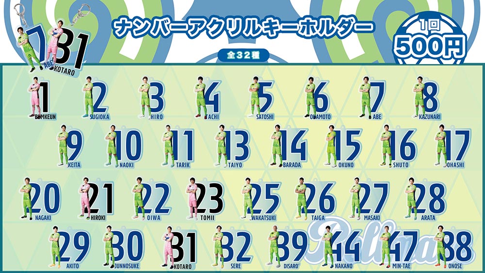 背番号が目立ったシンプルなアクリルキーホルダーが新登場。ぜひ集めてくださいね!