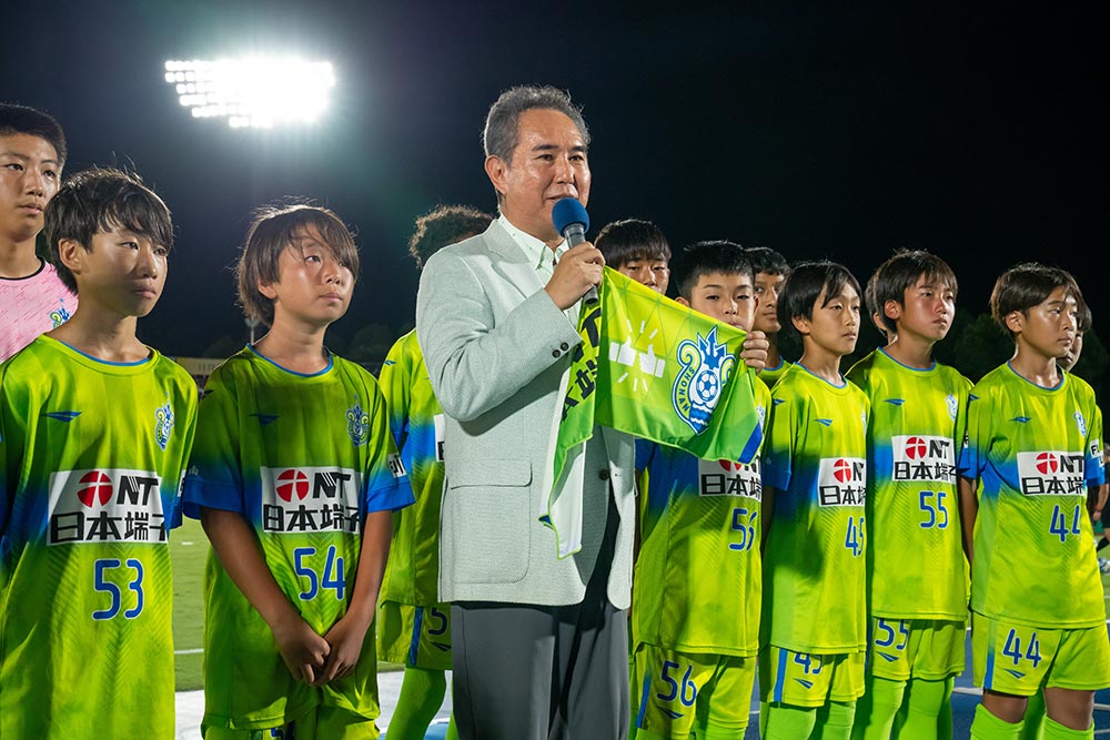 ハーフタイムには日本端子スペシャルデーゲストトークとして、日本端子株式会社 代表取締役社長 河野 二郎様より熱いエールを送っていただきました。