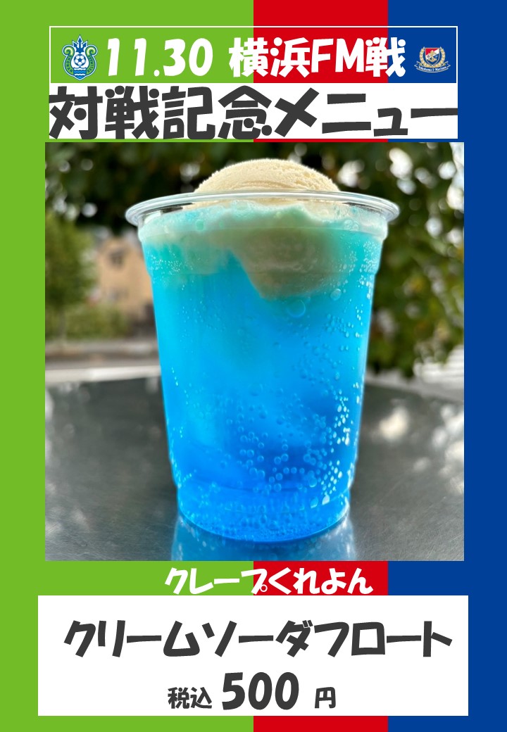 『クリームソーダフロート』 当日販売価格(税込):500円 マリノスをイメージした限定メニューです! |