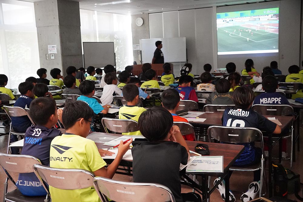 トレーニングの合間には、講義やレクリエーショを行い、講義では「攻撃の原理原則」「守備の原理原則」などを映像や図を用いて学び、実際のプレーに落とし込みました。