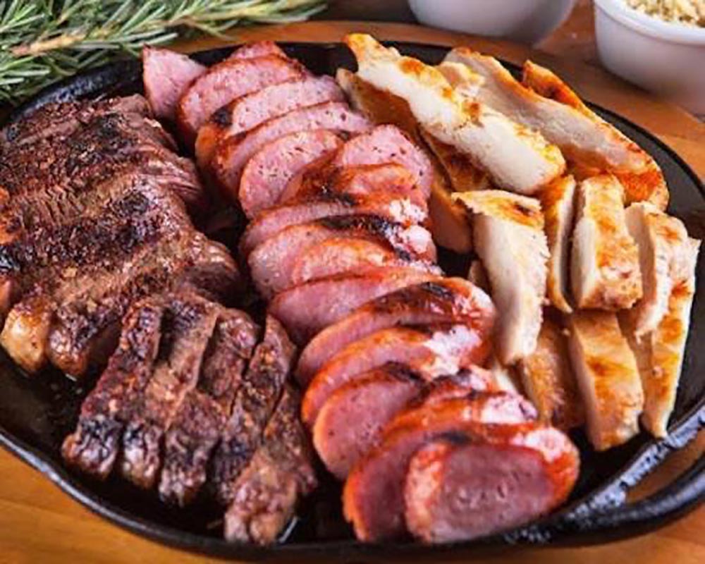 『シュラスコの盛り合わせ』 当日販売価格(税込)1,500円 牛肉,(ピッカーニャ、牛ランブ),ブラジルソーセージ,鳥のもも肉,ウィナグレッテ,ファローファ |
