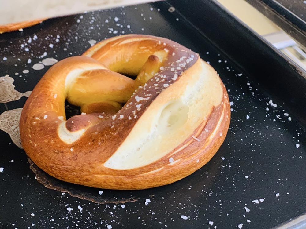 『天然岩塩のプレッツェル』 当日販売価格(税込) 350円 香ばしく焼き上げたプレッツェルに、旨み豊かな天然岩塩をひと振り。シンプルながらも深い味わいで、噛むほどに小麦の香ばしさと塩の旨みが広がります。そのままでも美味しく、ビールとの相性は抜群! |