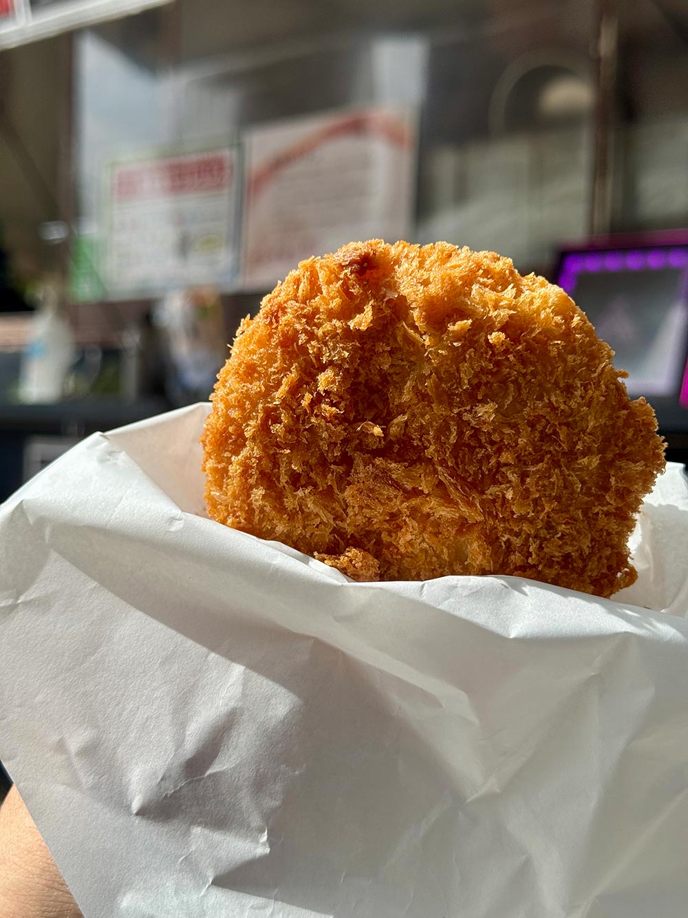 『湘南こっこからあげ』 当日販売価格(税込) 650円 新鮮なまま職人の手によって捌かれ、じっくり煮込んだ秘伝のタレに漬け込み、味付けしています。 からあげ1 個に費やす時間はおよそ3 日間。最後は自家製鶏油(チーユー)で揚げ、皆様へ提供しております。 |