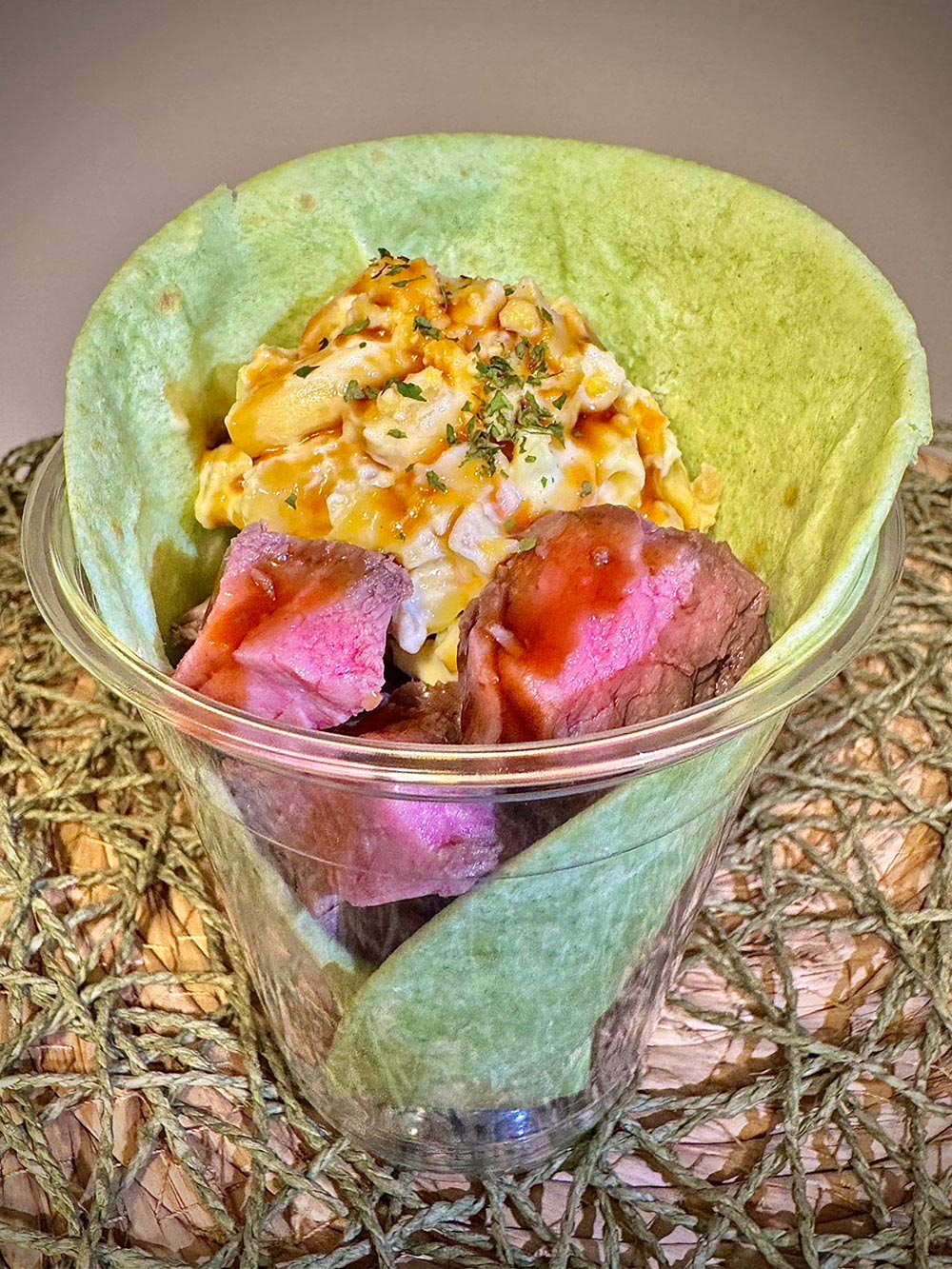 『てりたまビーフトルティーヤ』 当日販売価格(税込)1,000円 ホットサンドで大人気だったてりたまがローストビーフとコラボしておつまみにぴったりなワンハンドメニューとして復刻! |