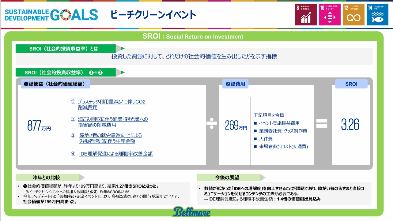 結果、今回の取組による総便益(社会的価値総額)は877万円、SROIは3.26となりました。