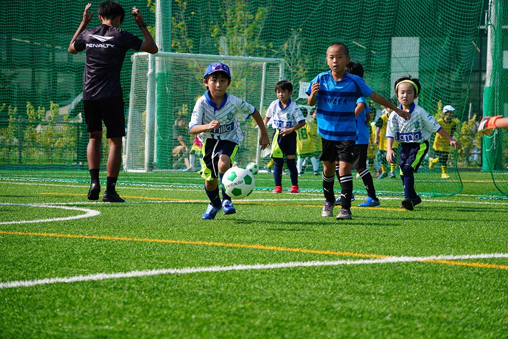 またピッチでは、スクール生たちが仲間と力を合わせて攻守にわたり全力を尽くし、躍動感あふれるプレーを披露。