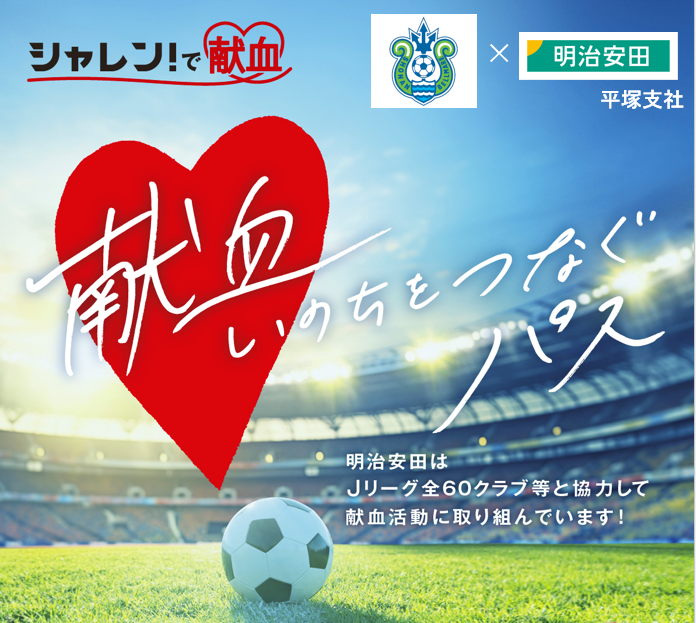 11月8日(土)アルビレックス新潟戦で、Jリーグのシャレン!活動の一環として、明治安田・神奈川県赤十字血液センターとの協働による「シャレン!で献血」と題し、ホームゲームで献血バスを出展いたします。