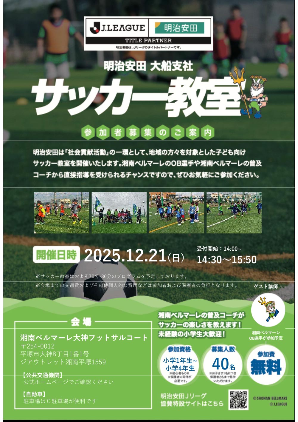 12月21日(日)開催予定のサッカー教室のお申込み受付を実施いたします。