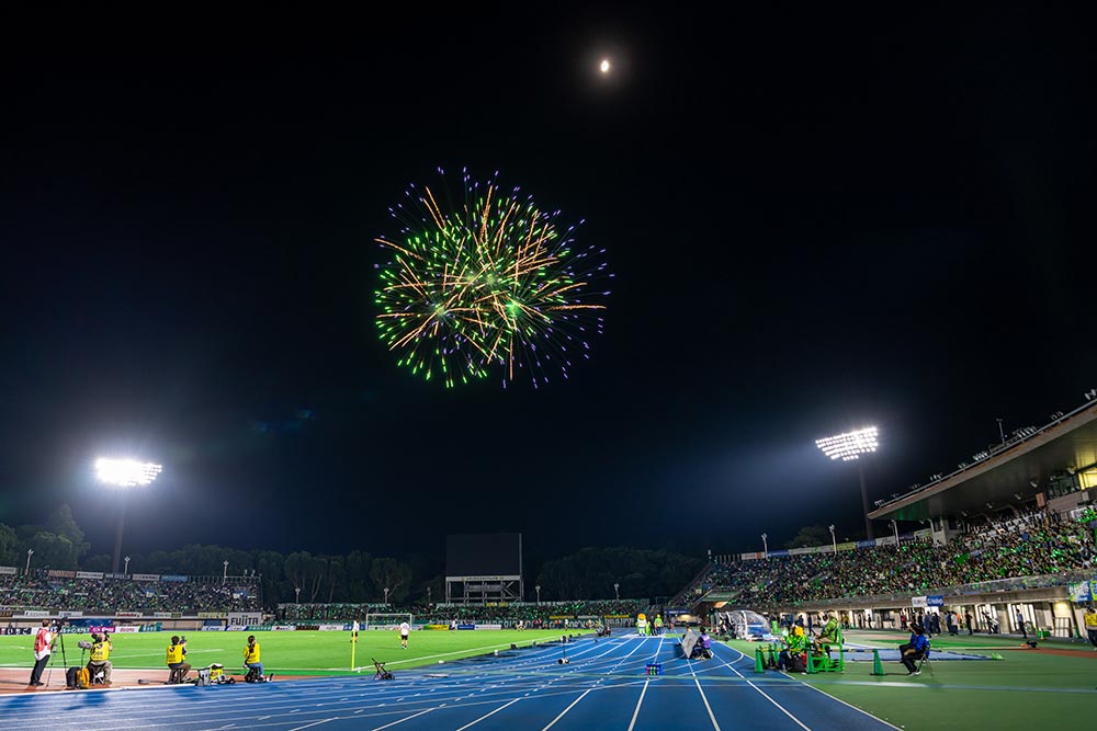 ゲストトークに続いて「日本端子Presents 必勝祈願!打ち上げ花火」を実施し、華やかに夜空を彩りました。また、打ち上げ時に場内の照明を落としペンライト演出を行いました。