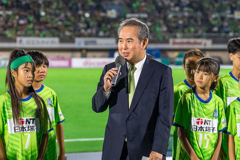 ハーフタイムには日本端子スペシャルデーゲストトークとして、日本端子株式会社 代表取締役社長 河野 二郎様より熱いエールを送っていただきました。
