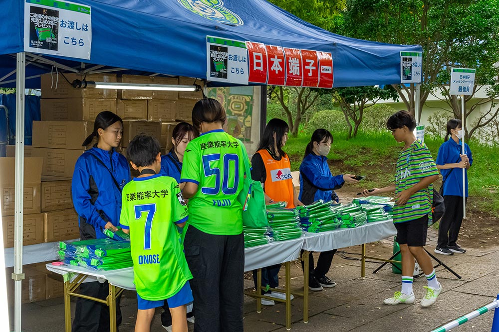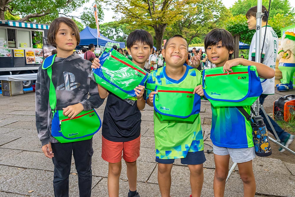 キングベルパーク特設ブースでは「日本端子×湘南ベルマーレ オリジナルメッセンジャーバッグ」が先着2,500名様の小中高生にプレゼントされました。