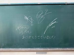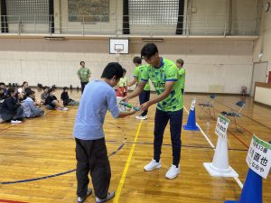 時間の関係で全員にサインすることは難しかったため、選手からサイン入りグッズをクラスへプレゼント!