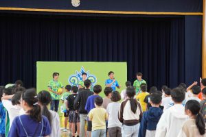 最後の挨拶では、鈴木章斗選手が「今日は短い時間でしたが楽しめましたか?」と問いかけると、子どもたちは元気いっぱいの声で「ハ〜イ!!」と返答。