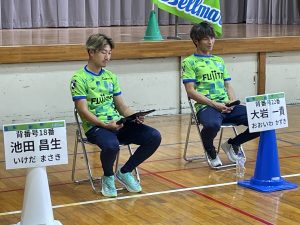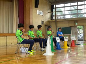 「試合前には何を食べますか?」という質問では、「お米やパスタ」といった炭水化物が多く挙がり、松本果成選手は「ようかん」と答え、子どもたちからは驚きと笑いが起こりました。