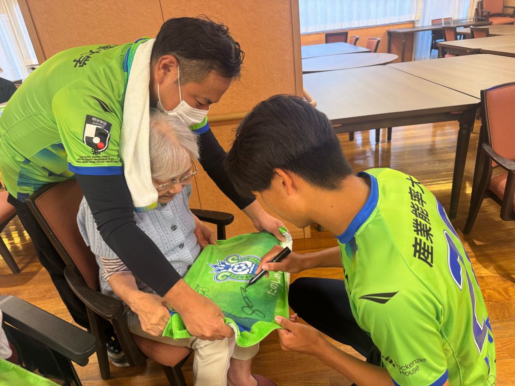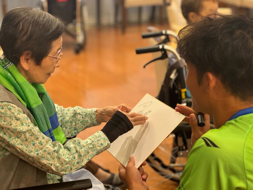 また、ご入居者さまの中で湘南ベルマーレを応援してくださっている方がいて、「頑張ってね!なんてったって名前に”湘南”ってあるんだから」とお声がけいただき、年齢問わずたくさんの方に応援していただいていることを改めて感じました。