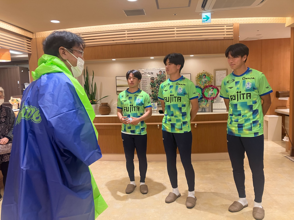 10月22日(水)にJリーグ新人研修の一環として、今シーズン加入した田村蒼生選手・石橋瀬凪選手・松本果成選手・本多康太郎選手・渡邊啓吾選手が介護付きホーム「SOMPOケアラヴィーレ湘南平塚(壱番館/弐番館)」へ訪問し、ご入居者さまと交流しましたのでご報告いたします。