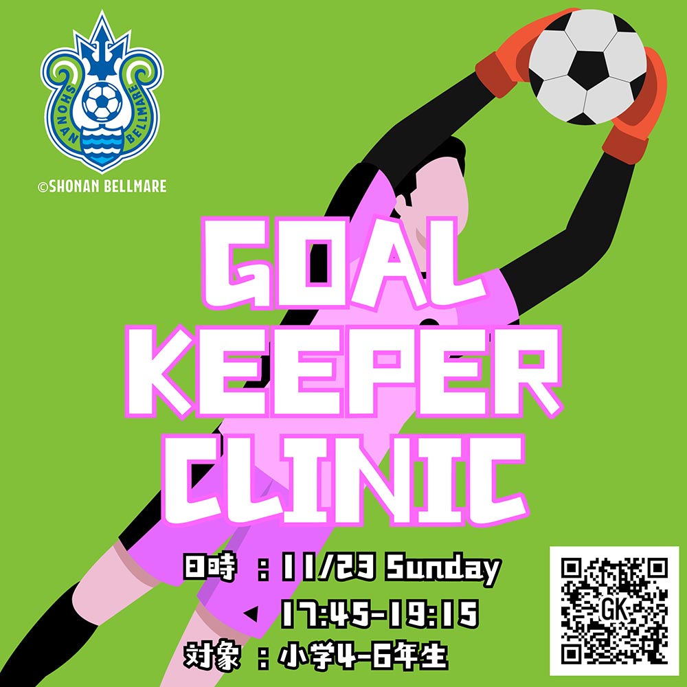 11月23日(日)に湘南ベルマーレアスレティックセンターフットサルコートで、小学4~6年生対象「ゴールキーパークリニック」を開催いたします。