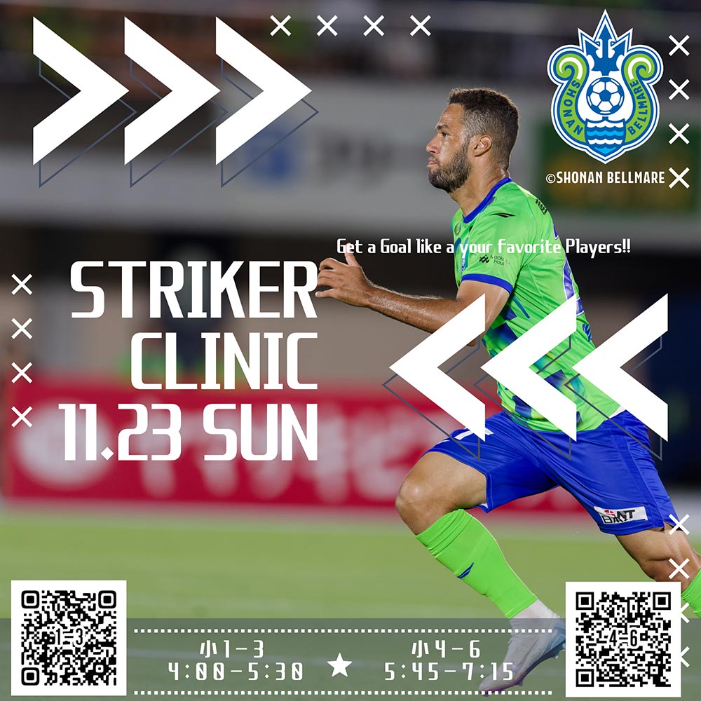 11月23日(日)に湘南ベルマーレアスレティックセンターフットサルコートで、小学生対象「ストライカークリニック」を開催いたします。