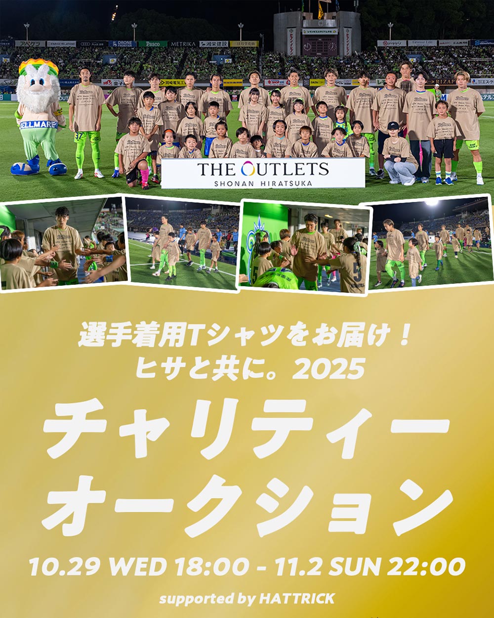 今回実施する「「ヒサと共に。2025」選手着用Tシャツチャリティーオークション」は、選手が川崎戦入場時に着用したTシャツに直筆サインを入れてお届けいたします。
