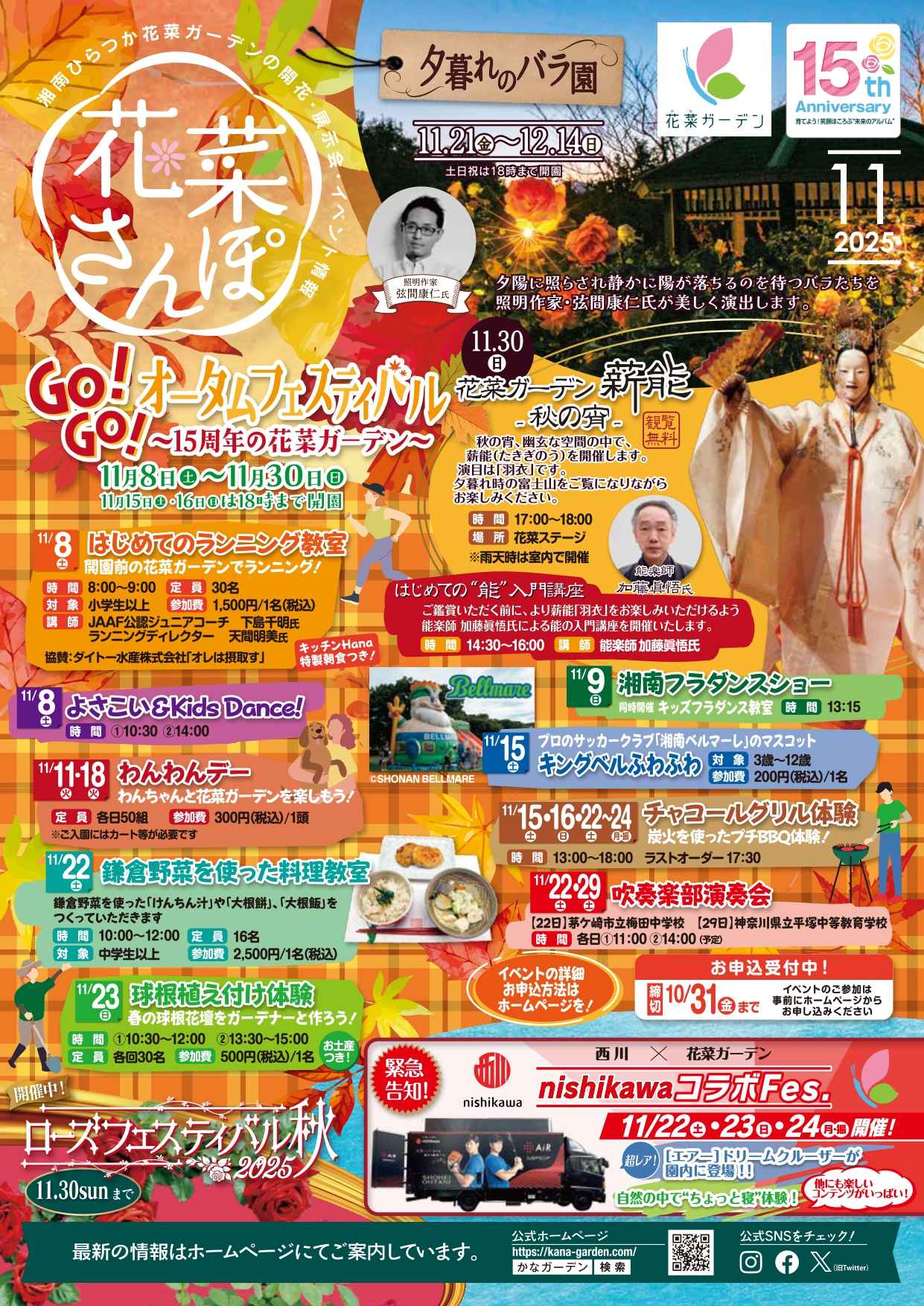 ※「GO!GO!オータムフェスティバル 15周年の花菜ガーデン」は、11月8日(土)~30日(日)の期間に開催されています。