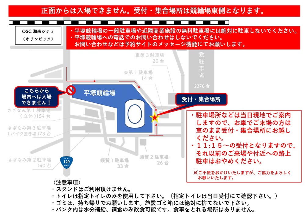 ※競輪場への入場導線、集合場所は下の案内図を必ずご確認ください。