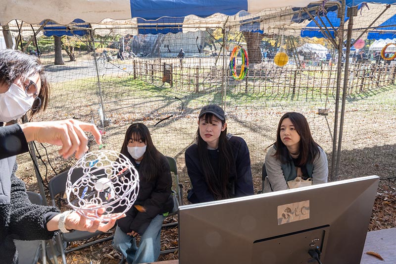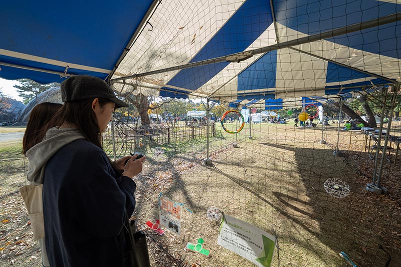 操縦型ドローンでゴールを狙う未来型スポーツを体験!実際にドローンを操縦しながら様々なアクションに挑むブースは、見ているだけでもワクワクしました。