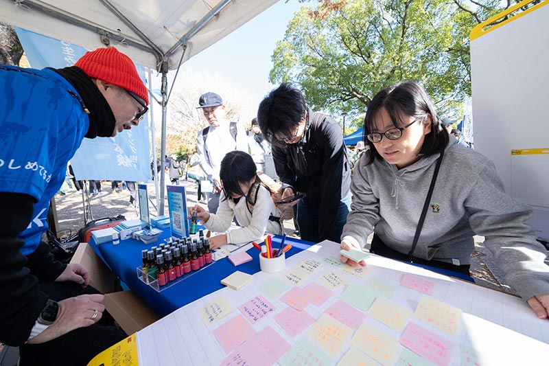 フードロスやフラワーロスなどの実態を学ぶとともに、廃棄予定のバラで作ったアロマスプレーを体感。参加いただいた方はアップサイクルへの理解を深め、様々な学びがあるブースとなりました。