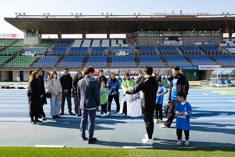 KPMGコンサルティング株式会社社員、関係者の皆さまで試合前のスタジアムツアー・ウォーミングアップ花道・エールフラッグ・エスコートキッズ・コーポレートフラッグ入場イベントにご参加されました。