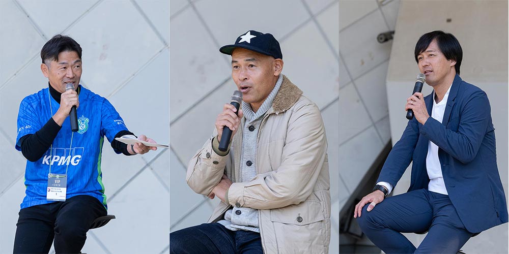 沖縄サッカーキャンプGM高原直泰様をお招きし、沖縄サッカーキャンプの紹介や合宿地としての魅力訴求、スポーツツーリズム、合宿のトレンドを伝え、沖縄の魅力を知ってもらうトークショーを開催しました。登壇は、沖縄サッカーキャンプGMの高原直泰氏、KPMGコンサルティング株式会社副代表の佐渡誠氏、株式会社湘南ベルマーレ代表取締役社長の坂本紘司が参加しました。