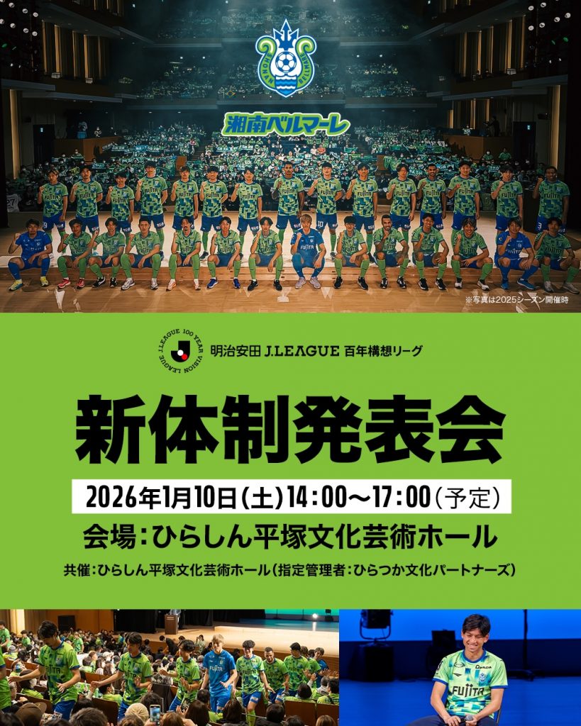 1月10日(土)にひらしん平塚文化芸術ホールで、「明治安田Jリーグ百年構想リーグ 新体制発表会」を開催いたします!